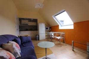 Au 3ème et dernier Ă©tage d’un immeuble de charme du centre-ville QuimpĂ©rois, cet appartement lumineux est composĂ© d’une pièce Ă vivre avec de nombreux rangements, une petite cuisine Ă©quipĂ©e Ă neuf ( plaque vitrocĂ©ramique et rĂ©frigĂ©rateur) et d’une salle d’eau avec wc. Un canapĂ© convertible est mis Ă disposition du…
