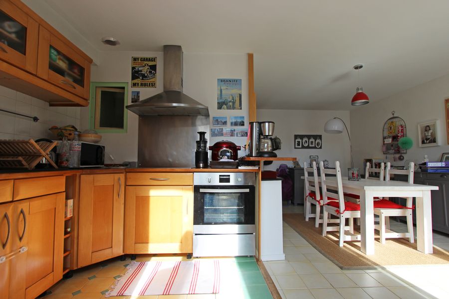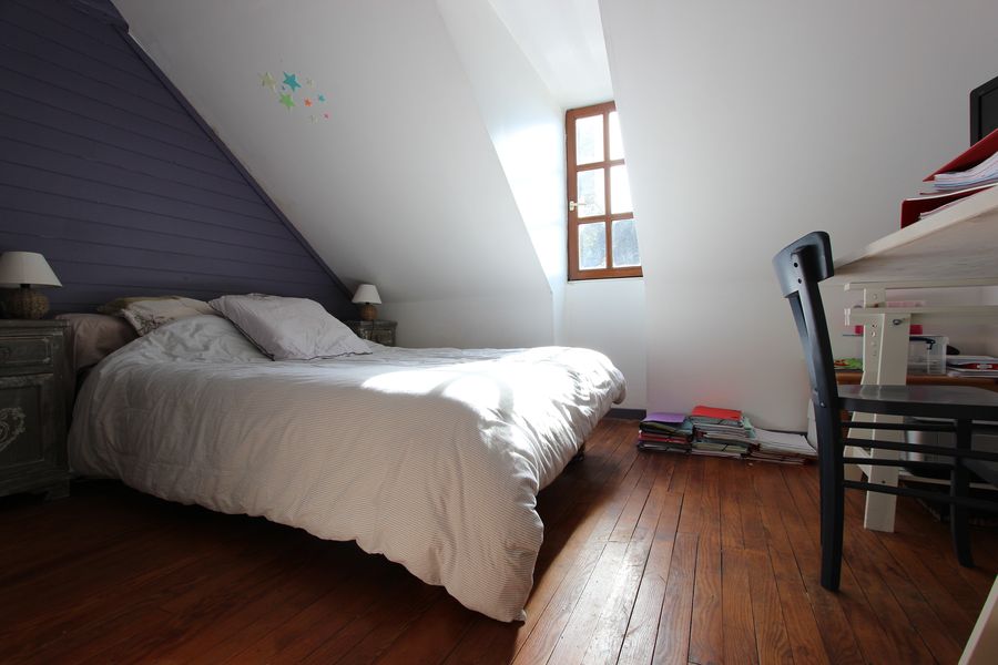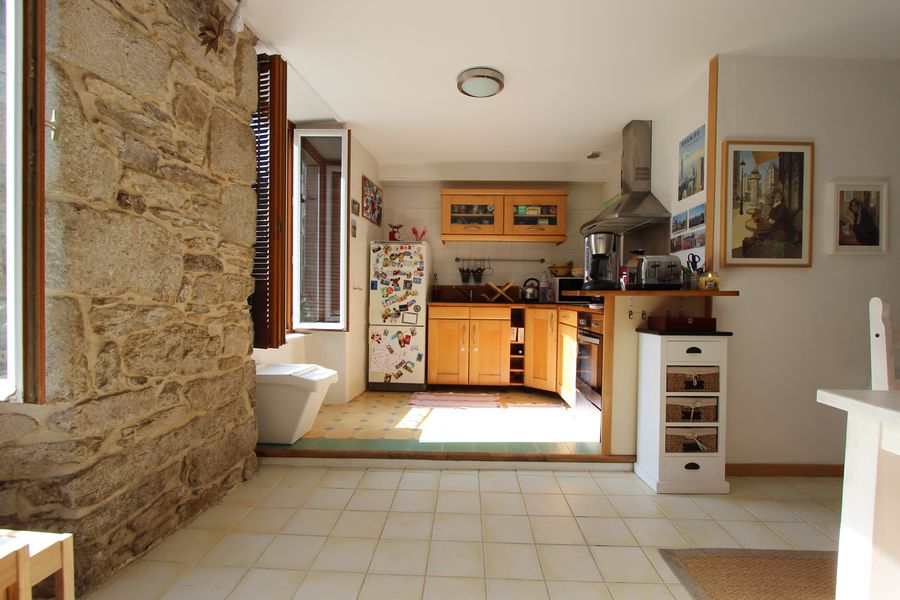 De beaux espaces de vie, modernes dans leur définition, séjour avec cuisine ouverte et salon privatif, offrent une jolie surface de 37 m². Pierres apparentes et vue dégagée, s’associent aux beaux volumes pour créer une atmosphère chaleureuse, accentuée par la belle lumière entrante et rasante d’une exposition Ouest.