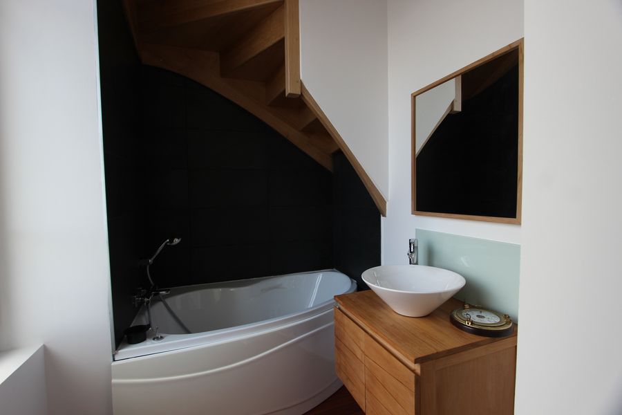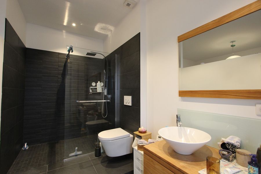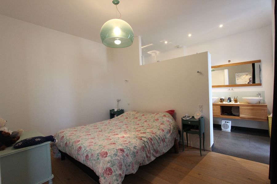 Au niveau, une suite de propriétaire se compose d’une grande chambre avec rangements, presque ouverte sur une vaste salle d’eau contemporaine.
