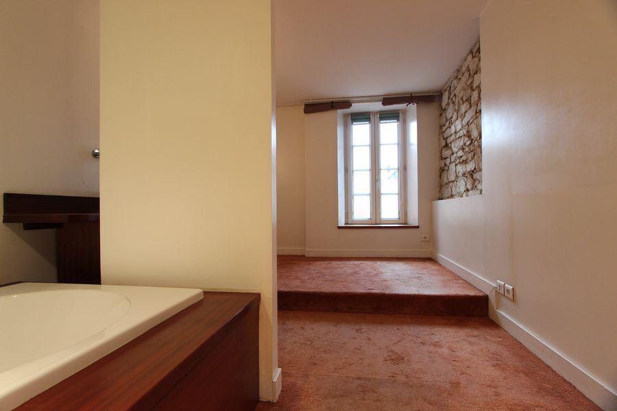 Côté nuit, une chambre avec dressing & salle de bains intégrée, puis une seconde petite : chambre-mezzanine-bureau avec salle d’eau & wc indépendant.