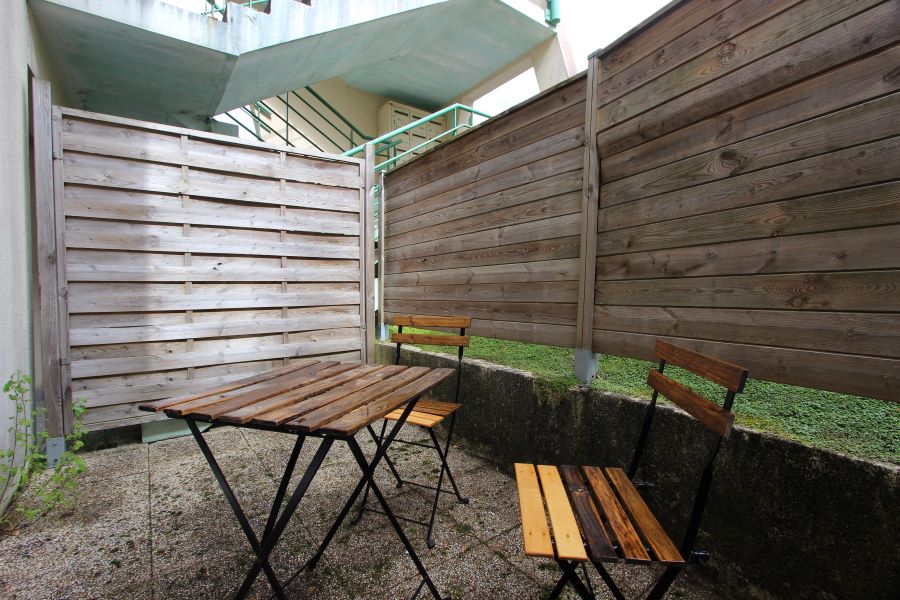 Il est composé d’une pièce à vivre avec placard & coin cuisine équipée donnant sur un petit extérieur et d’une salle d’eau avec wc.