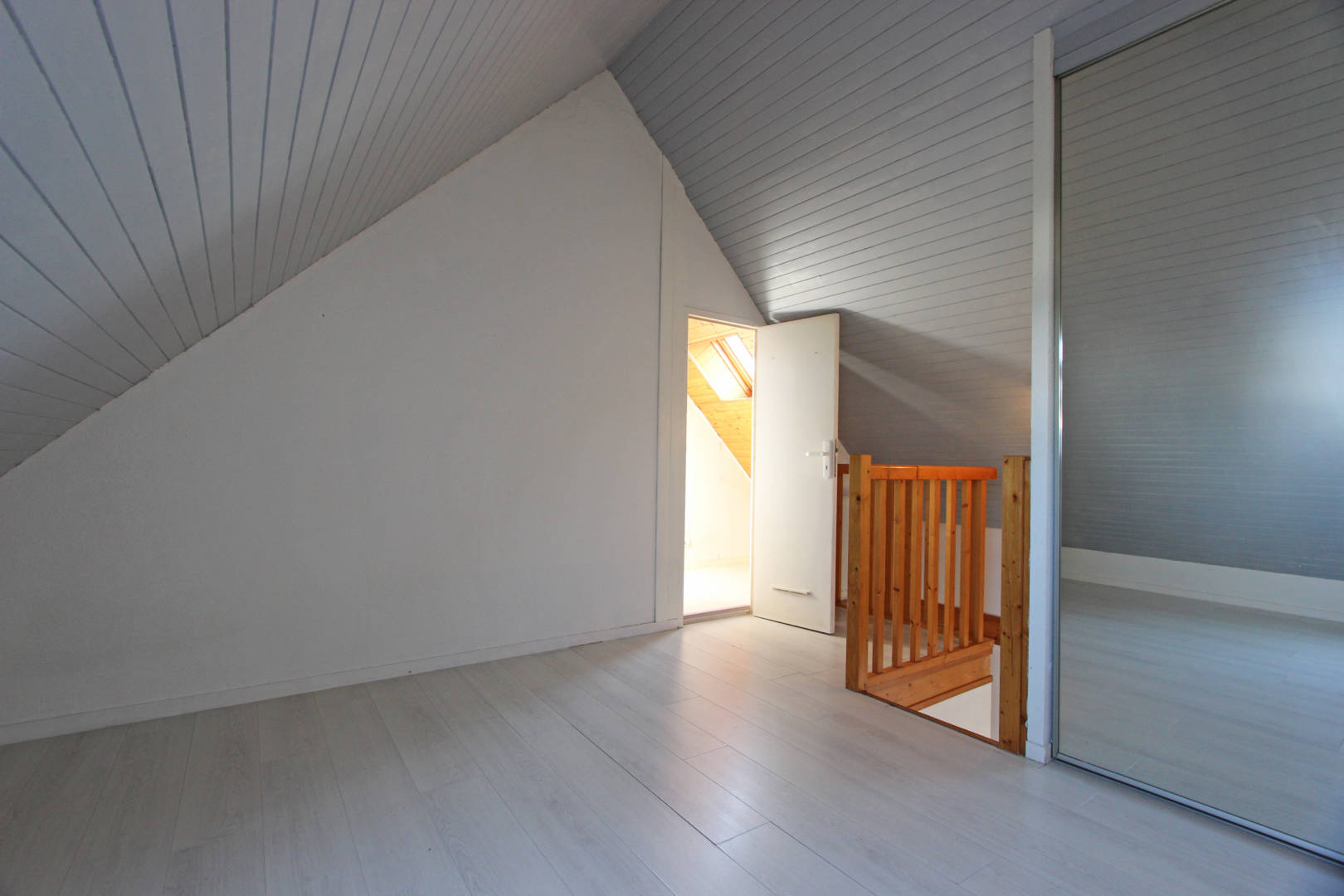 A l’étage , la partie nuit offre une belle chambre  mansardée de 15 m² avec une penderie double et un débarras pouvant faire office de dressing.
