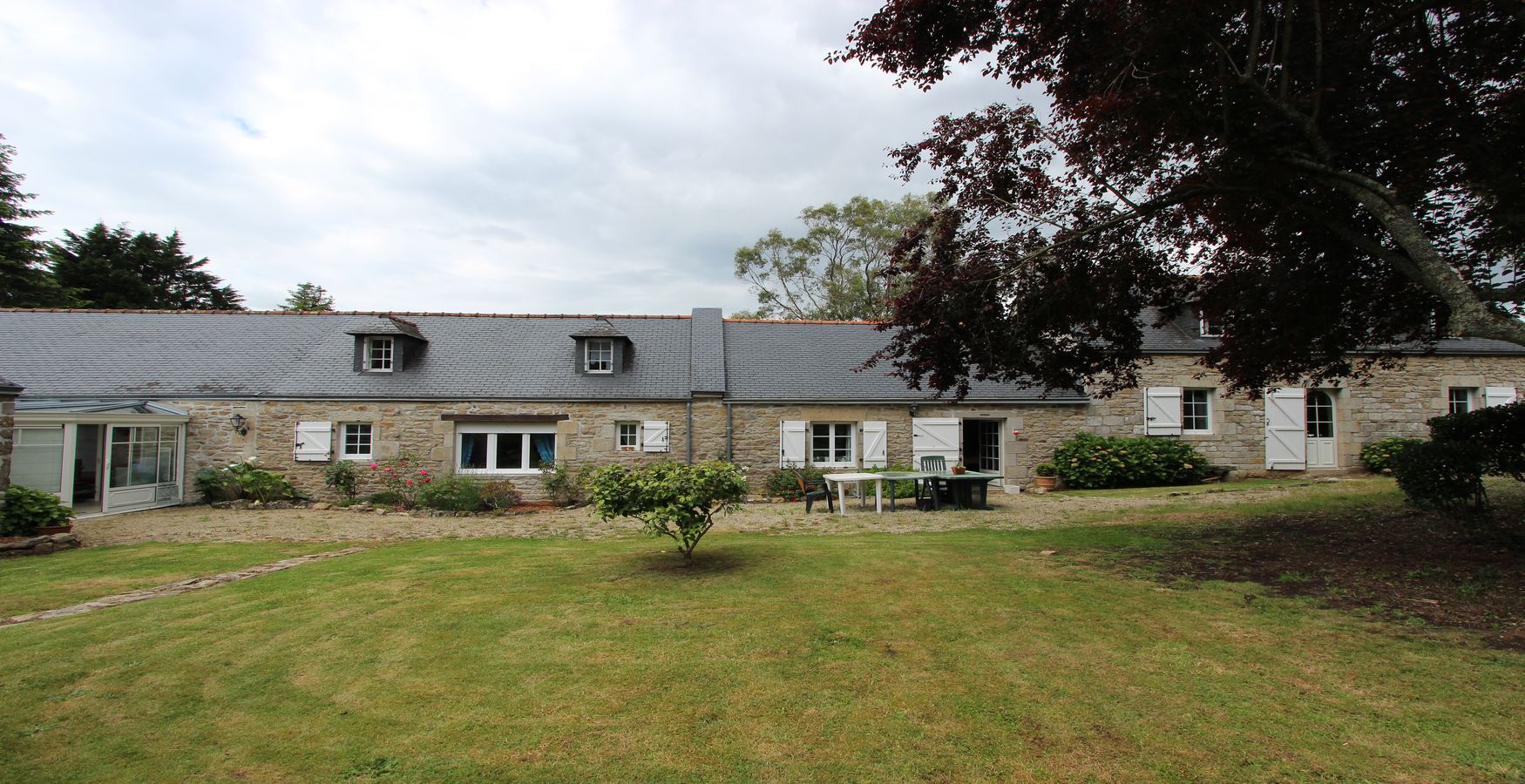A proximité de Quimper & son aéroport, dans un hameau intime situé sur les terres d’un superbe château, découvrez cet ensemble en pierres de 265 m², composé d’une longère d’habitation de 175 m² & ses dépendances. Le cadre est remarquable avec un terrain de 5 711 m², très au calme,…