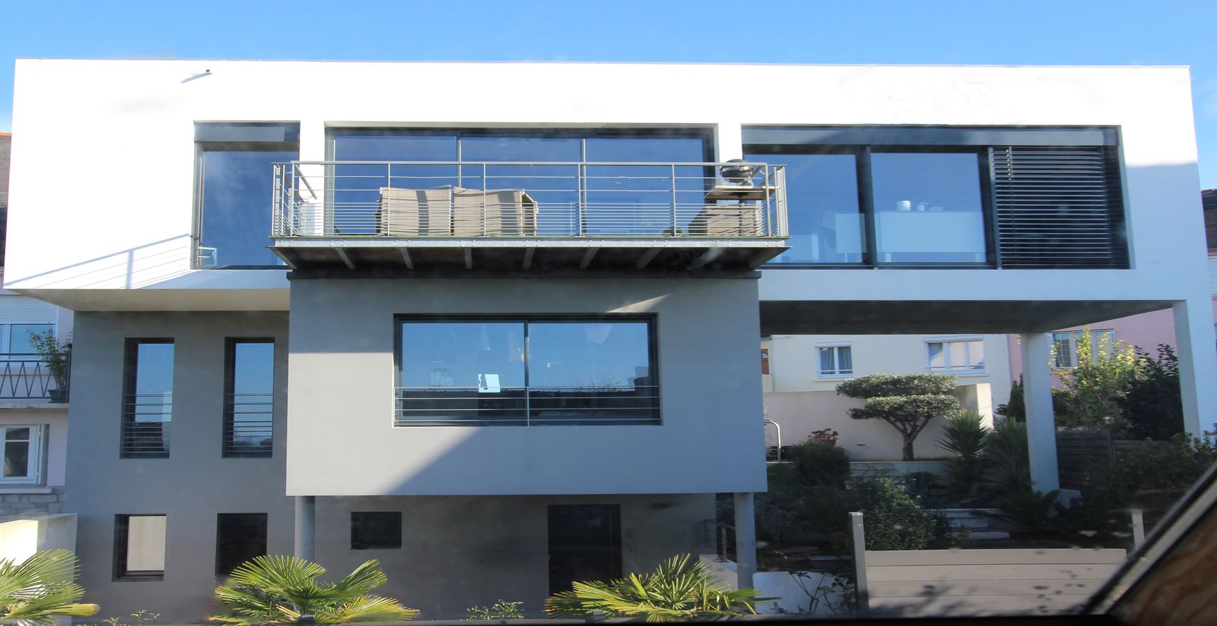 QUIMPER NORD. Au calme d’un lotissement desservi par le réseau bus, un fond d’impasse & cette maison d’architecte dessinée & réalisée en 2007. Son dessin architectural cubique dévoile en son intérieur, des volumes imprégnées de lumière de par un linéaire de baies vitrées exposées Sud & sa vue aérienne qui…