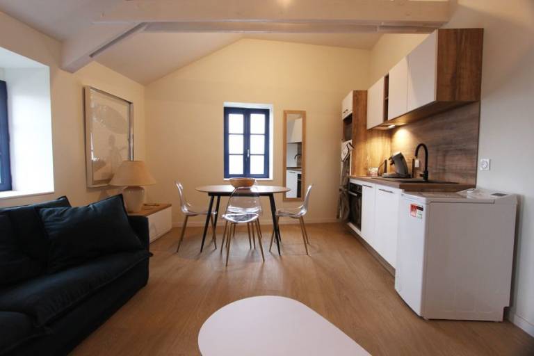Niché au dernier étage d’un bel immeuble du XVIIIème et surplombant les pavés anciens de la rue Kéréon, découvrez cet appartement de charme entièrement meublé. Il est composé d’une entrée, d’une belle pièce de vie avec sa cuisine, aménagée et équipée, semi-ouverte et d’un coin nuit. Une chambre avec rangements…