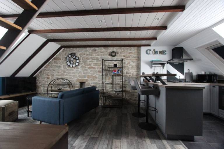 UN DESIGN CONTEMPORAIN POUR CE T1 BIS LOFTÉ AU CENTRE-VILLE QUIMPÉROIS.