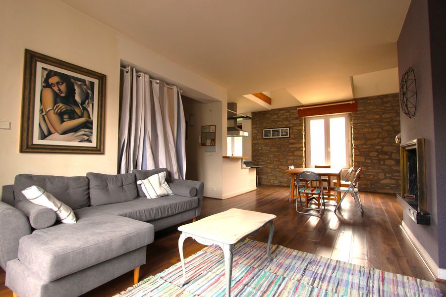 Au centre-ville de QUIMPER, Ă proximitĂ© de la place du marchĂ© & non loin du CinĂ©ville, se trouve un appartement unique sur deux Ă©tages de 77,85 m². A l’Ă©tage infĂ©rieur, la cuisine ouverte amĂ©nagĂ©e & Ă©quipĂ©e, ainsi que la partie salon avec sa cheminĂ©e offrent un refuge chaleureux d’une surface…