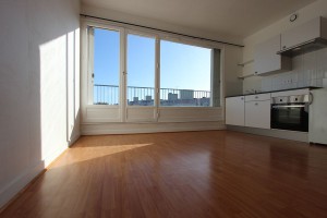 Au premier étage avec ascenseur, cet appartement est composé d’une cuisine aménagée & équipée (plaques vitrocéramiques, hotte et four), d’un salon/séjour traversant, de trois chambres et d’une salle d’eau.