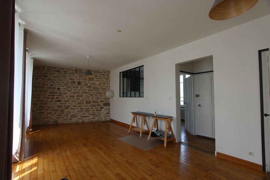 Dans une petite copropriété proche du centre-ville se situe au deuxième étage, cet appartement T2 bis plein de charme avec son parquet et son mur de pierres apparentes.