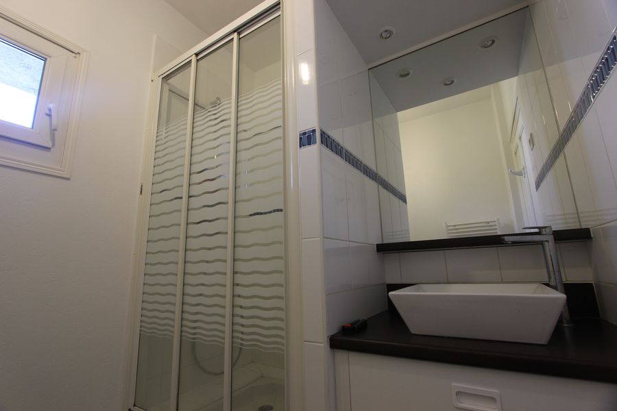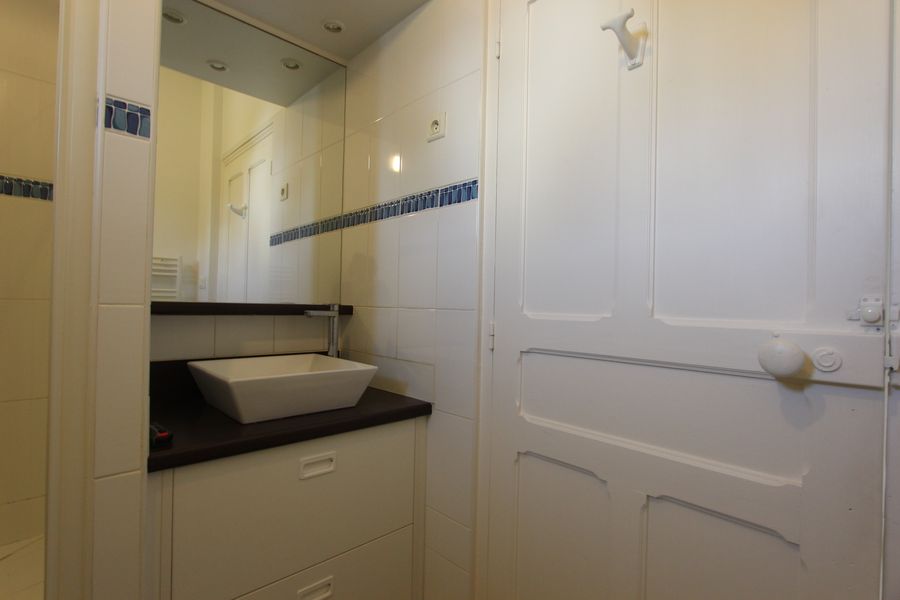 Il comprend une entrée avec placard, une cuisine aménagée & semi-équipée ( 4 feux gaz & four pyrolyse), une pièce de vie lumineuse, un dégagement, une chambre avec placard, un bureau et une salle d’eau avec wc.