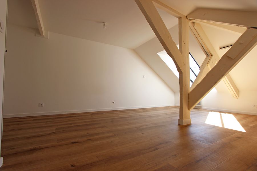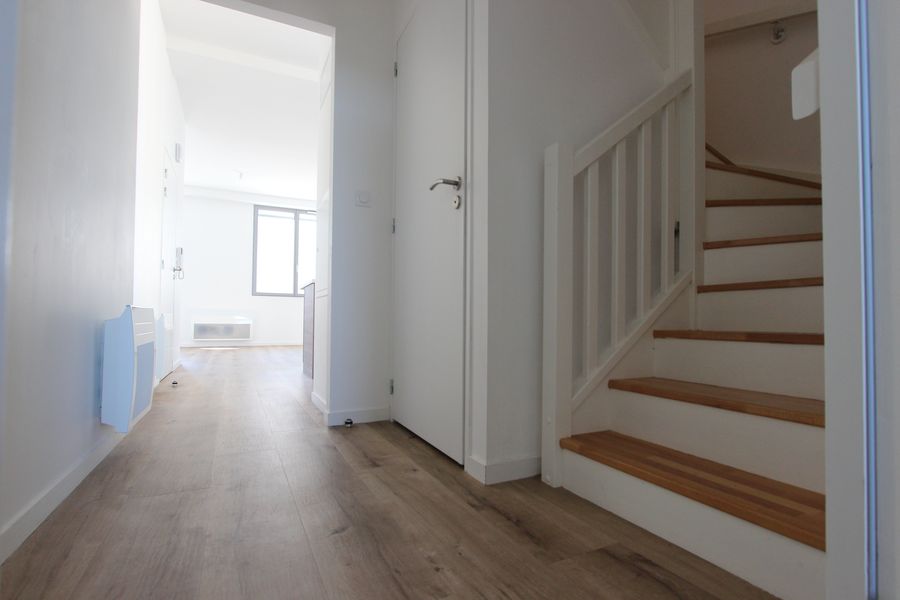 Situé au dernier étage d’un bâtiment entièrement réhabilité en 2018, cet appartement type 3 au format duplex comprend de très belles prestations :