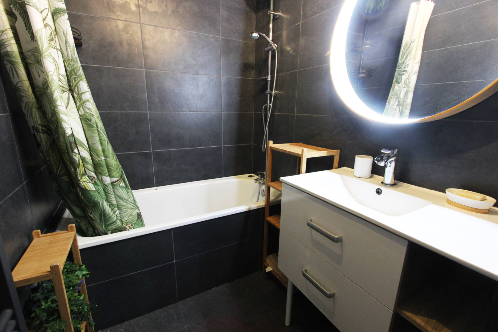 Il est composé d’une entrée avec placard, d’une pièce de vie avec une cuisine ouverte, aménagée et équipée, de deux chambres dont une avec placard, d’une salle de bains et d’un wc indépendant.