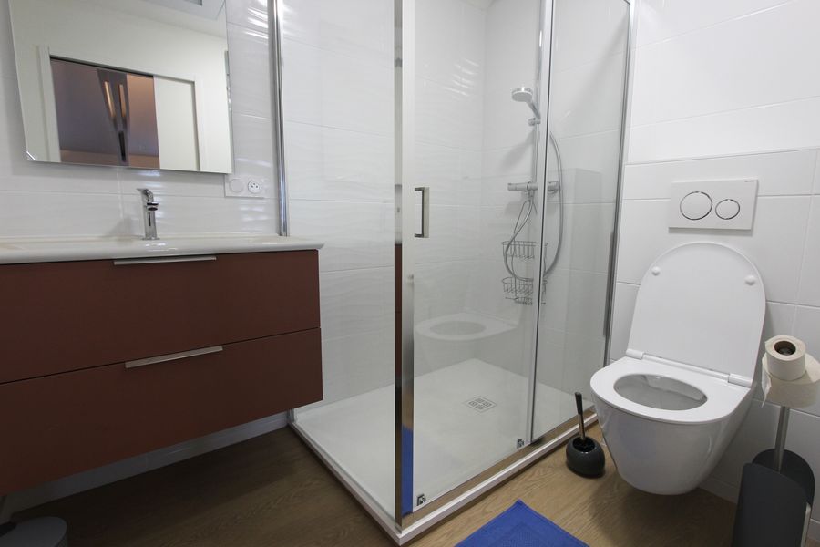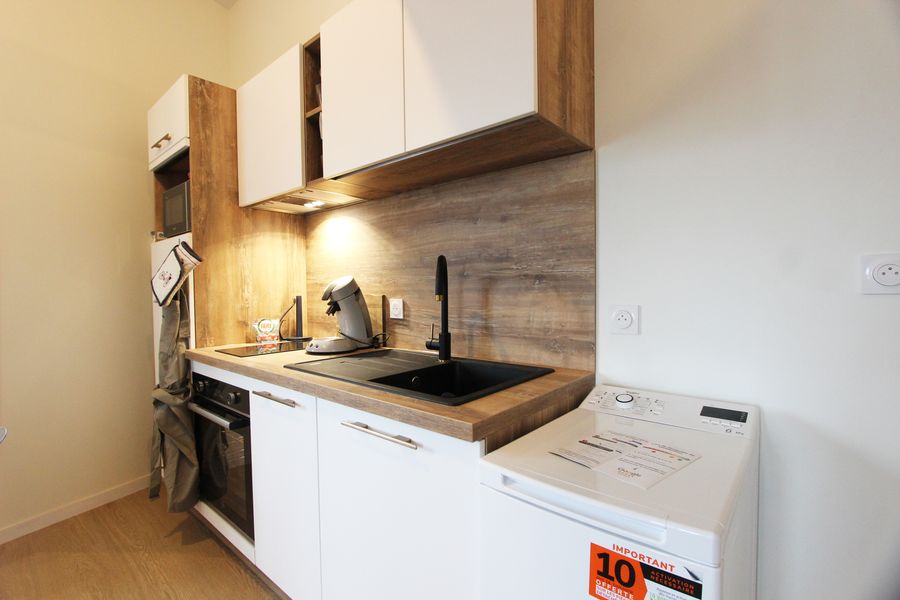 Il se compose d’une belle pièce de vie, d’environ 25 m², avec une cuisine, ouverte, aménagée et équipée (four, micro-onde, plaque de cuisson, hotte, machine a laver), de deux chambres avec placards et d’une salle d’eau avec wc.