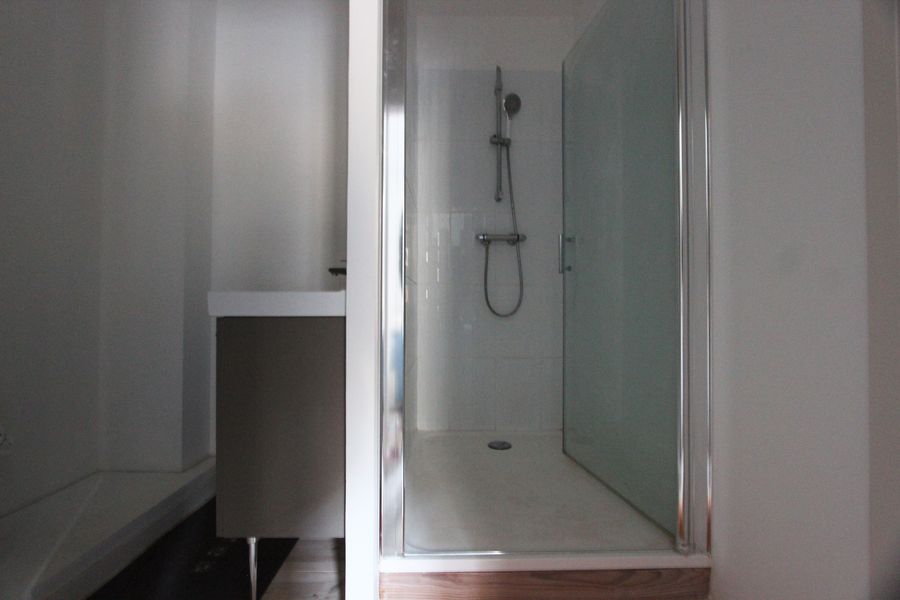 Une belle chambre profite d’une salle d’eau moderne avec un coin buanderie & un bureau (petite chambre) sous forme de verrière moderne ajoute à la fonctionnalité du logement.