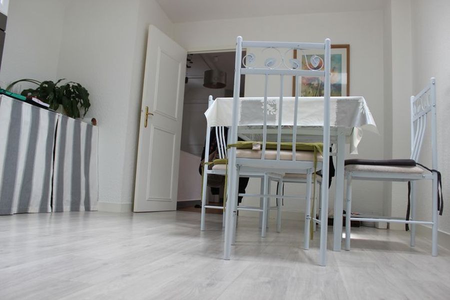 Aux fondations de la petite copropriété ? Les pavés quimpérois! Au troisième étage de l’immeuble ancien, ce Type 2 vous étonnera: un brin atypique, il se compose d’un couloir avec placard/penderie, d’une belle cuisine très lumineuse & équipée (four, plaques induction et hotte), d’un salon-séjour avec vue sur les toits…