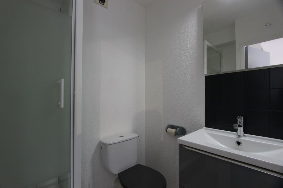Il est composé d’une pièce à vivre avec placard & coin cuisine équipée ( plaques vitrocéramique et réfrigérateur) donnant sur une petite terrasse et d’une salle d’eau avec wc.