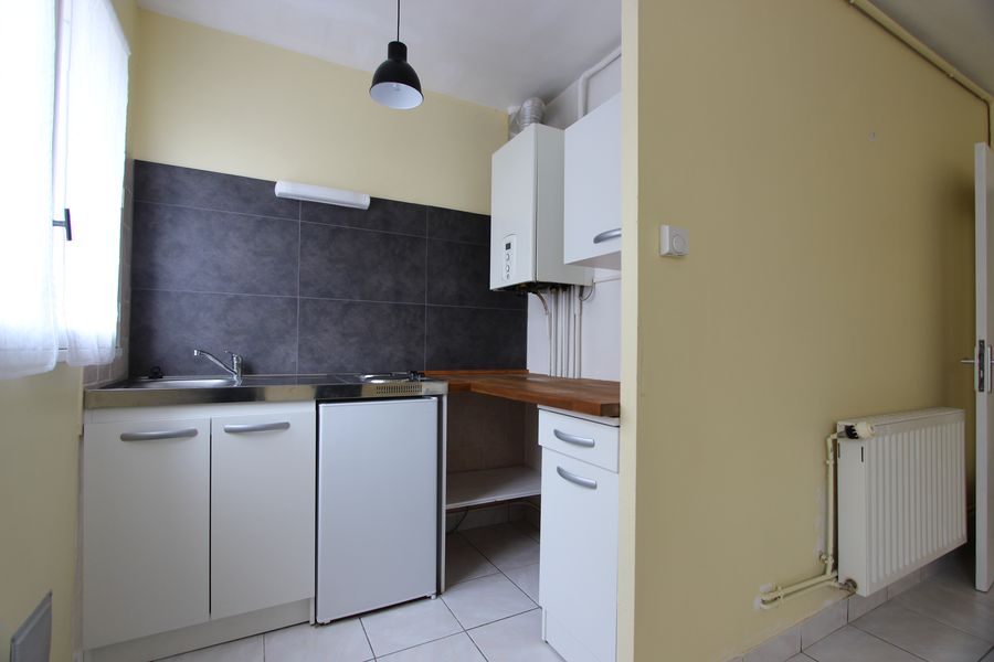 Il comprend une entrée, une pièce de vie avec coin cuisine aménagée & équipée ( plaques électriques et réfrigérateur) et une salle d’eau avec wc.