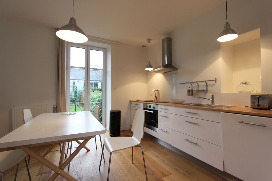 Au calme, avec accès à tous les commerces de proximité en centre-ville, une très jolie année 30 meublée et entièrement rénovée en 2017, avec des matériaux de qualité.