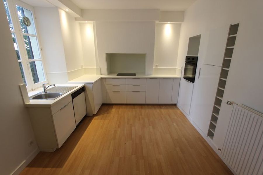 Dans le centre Historique de Quimper, à louer, une maison rénovée en 2015 comprenant au rez-de-chaussée : une entrée avec placard, une cuisine aménagée équipée dinatoire, un wc avec lave-mains.