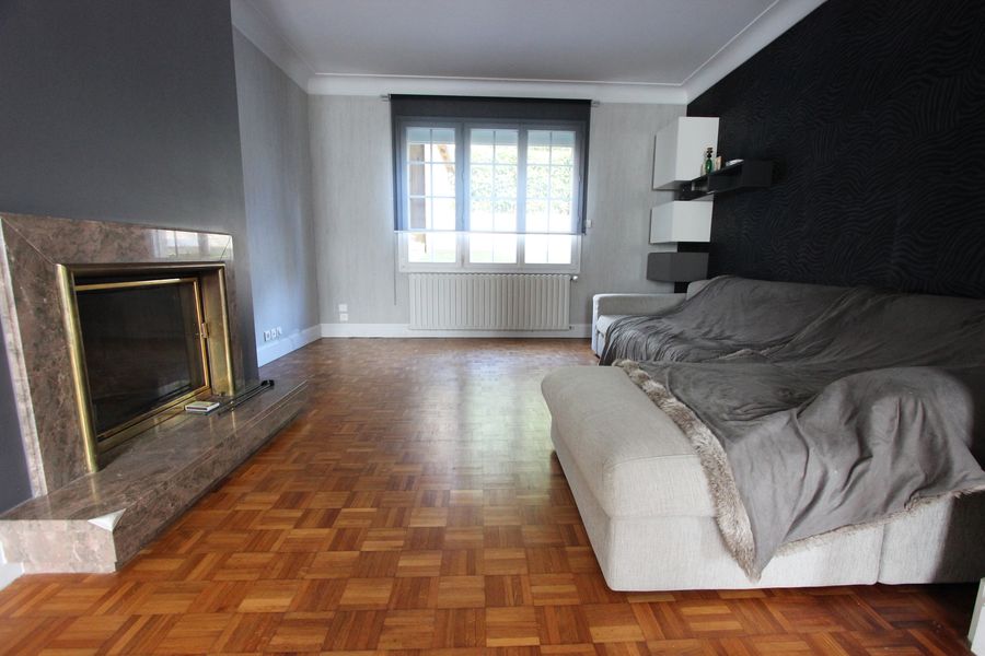 En son rez-de-chaussée : une entrée, un séjour de 27 m² avec insert, une cuisine aménagée équipée (plaque induction, hotte, four, réfrigérateur, lave-vaisselle) s’ouvrant sur une extension donnant directement sur la terrasse, une pièce technique avec douche et un wc.