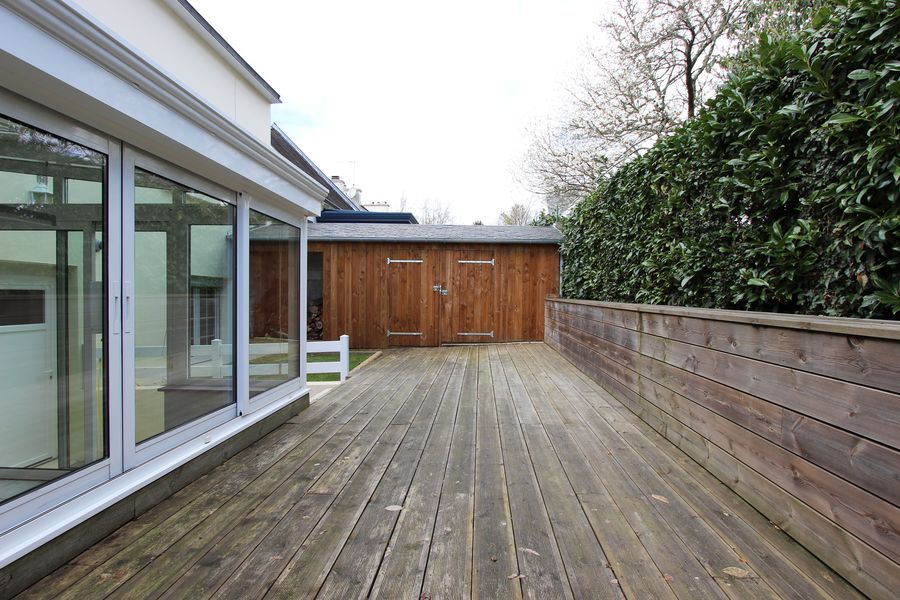 Un jardin clos avec deux abris de jardin & un garage complètent l’ensemble.