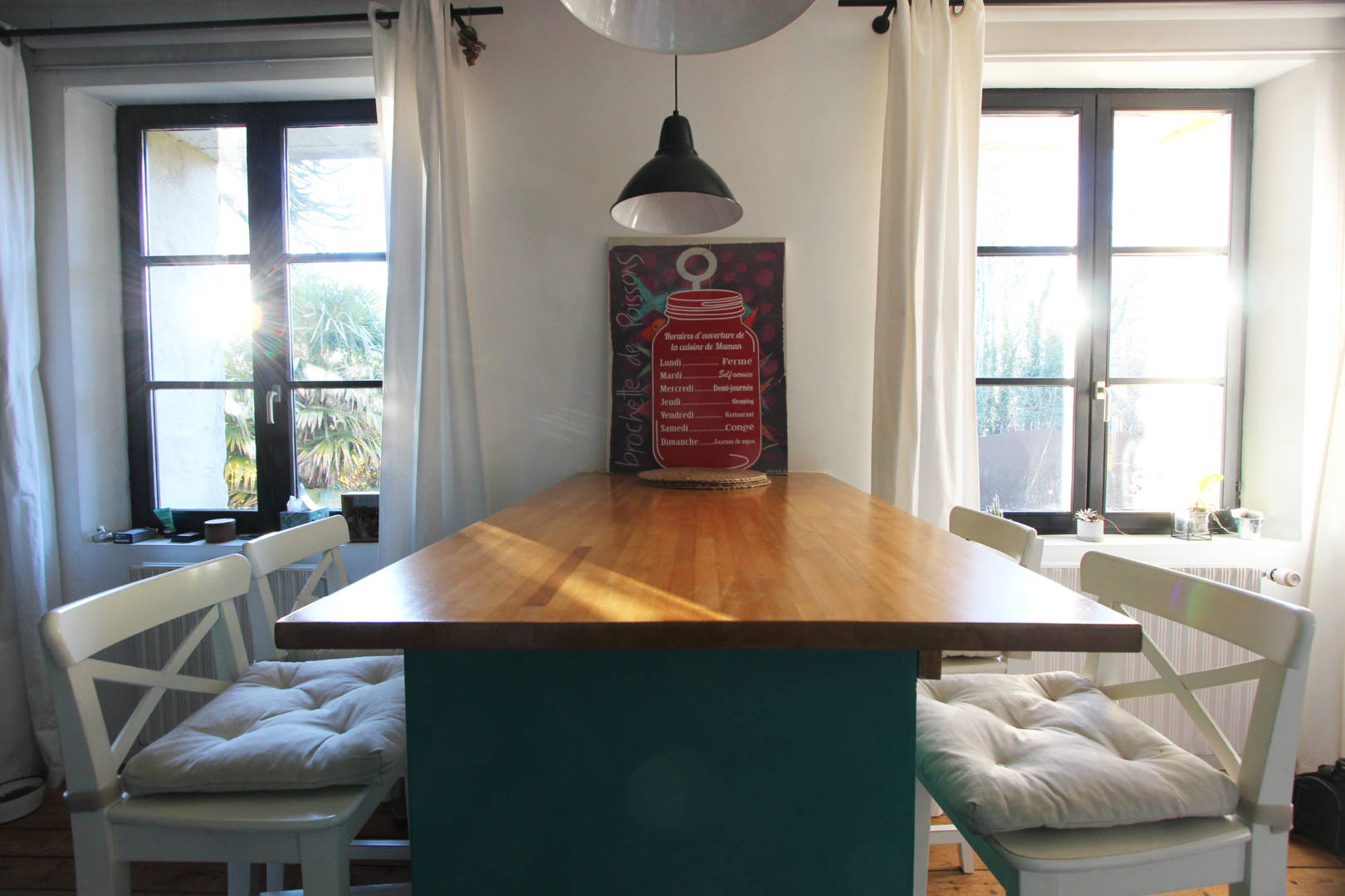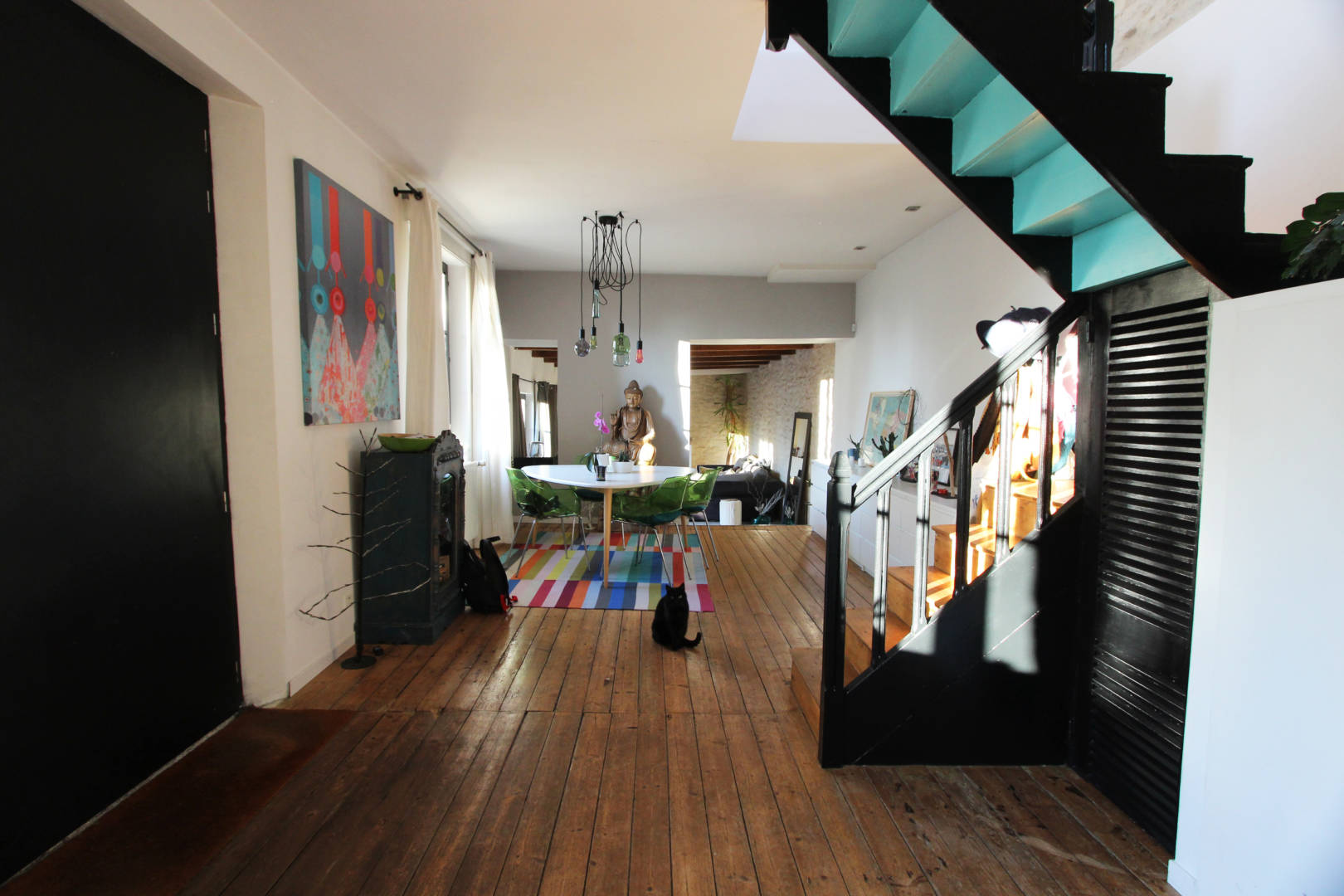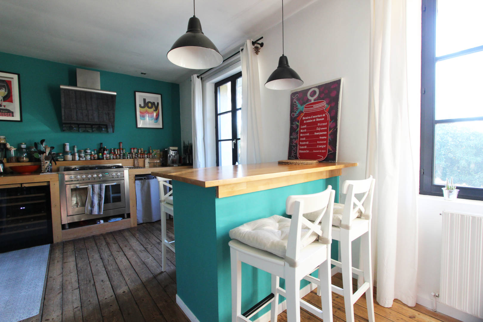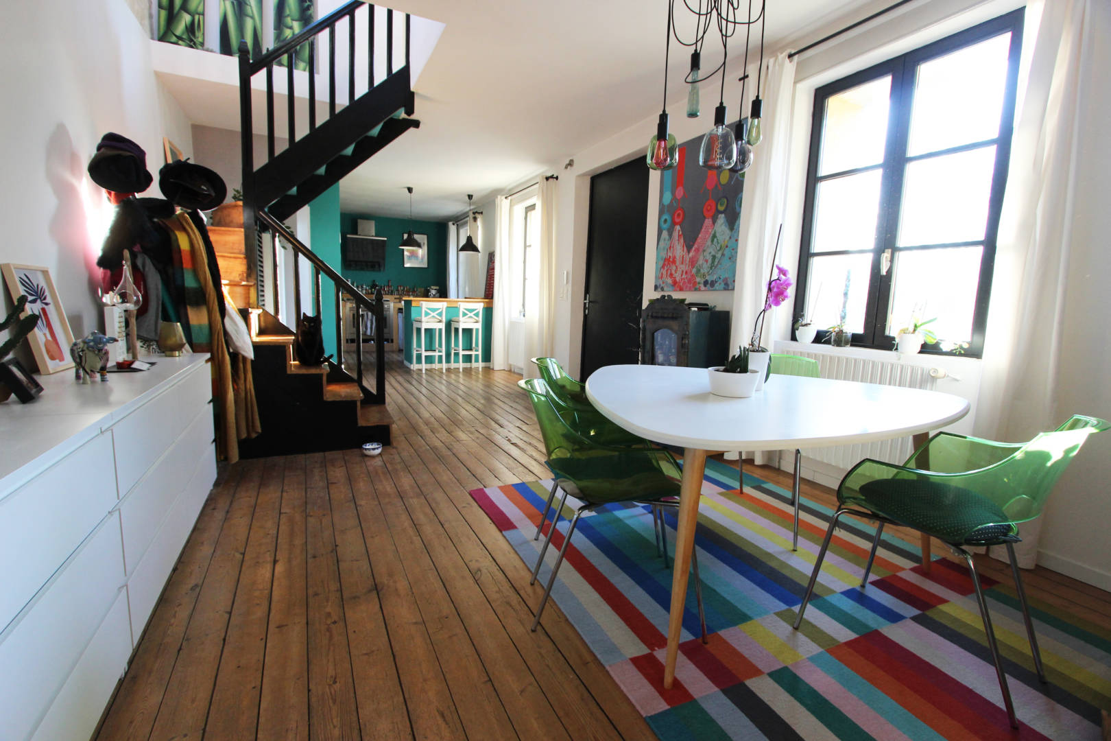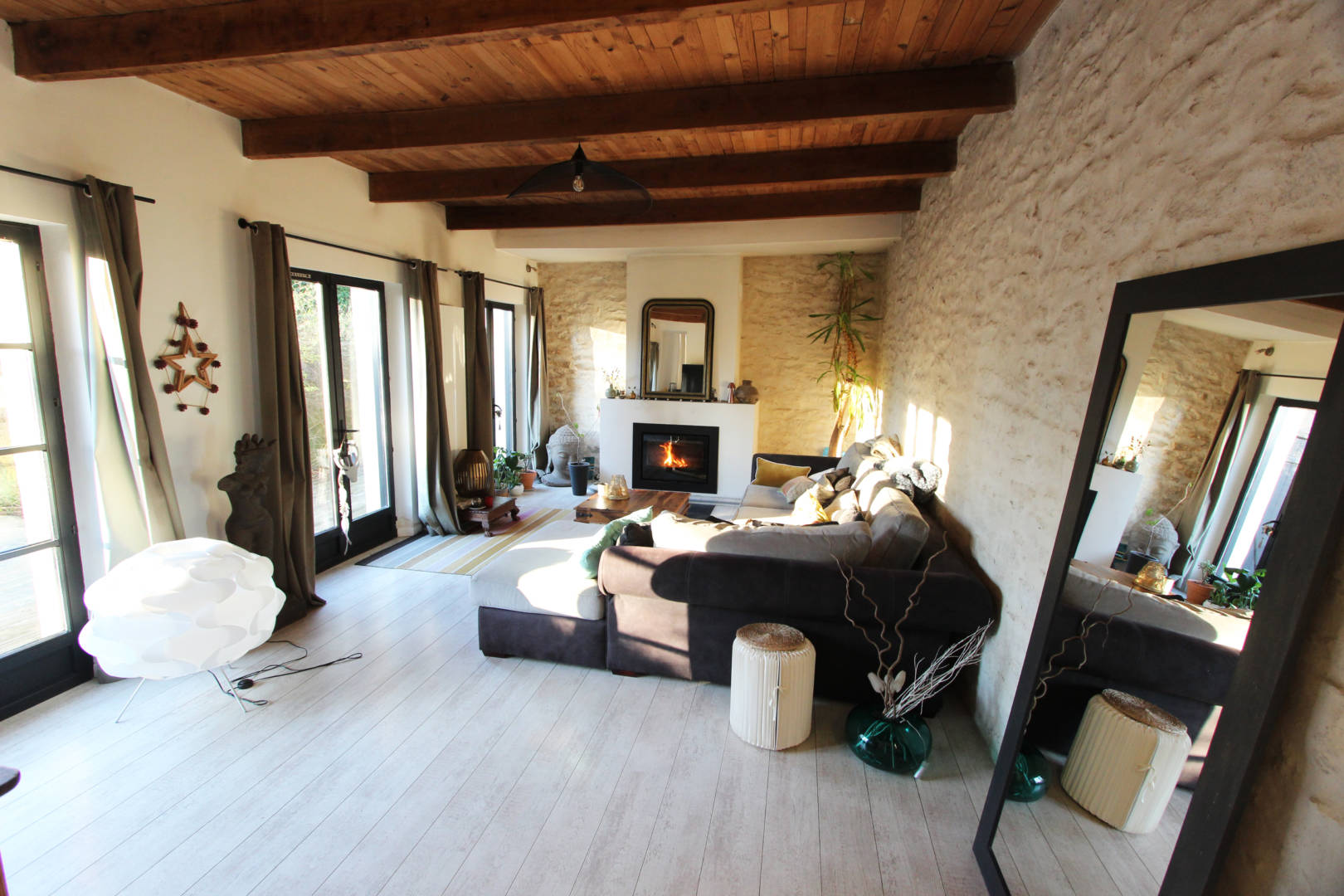 Au rez-de-chaussée, un bel espace de vie composé d’une cuisine ouverte, aménagée et équipée, d’une salle à manger et en rez-de-jardin d’un séjour cosy avec un poêle donnant directement sur la terrasse.