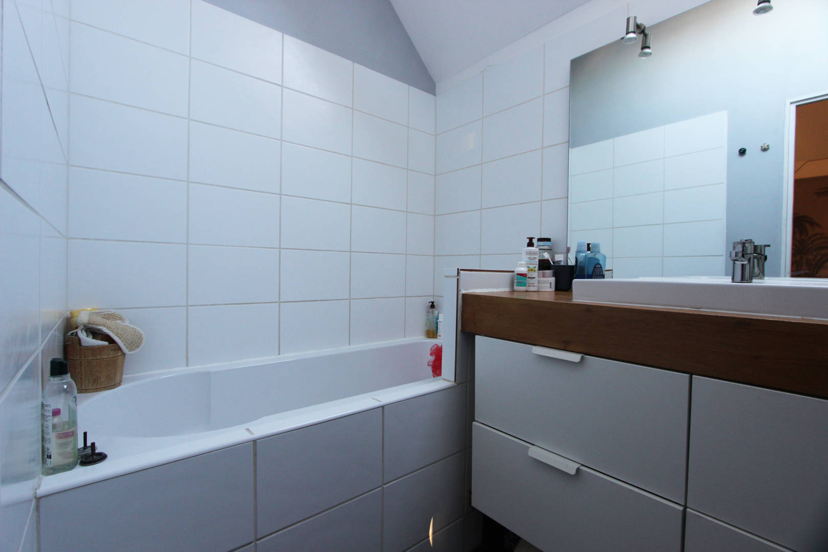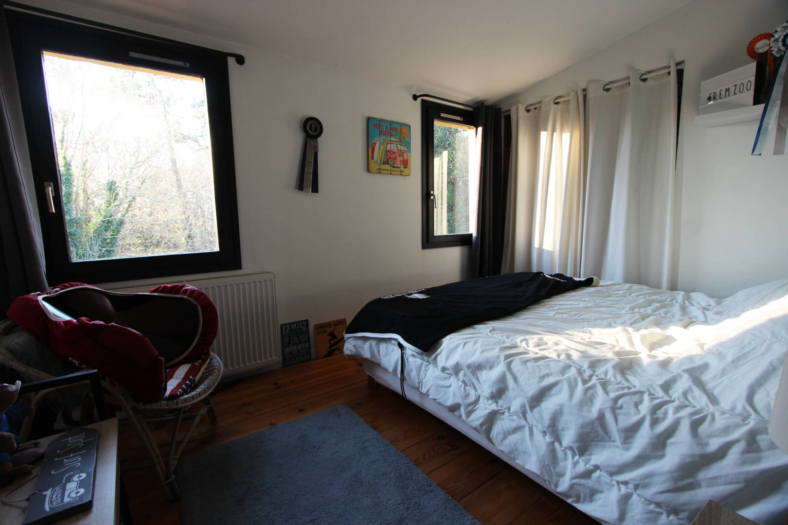 A l’étage, un palier bureau ou espace lecture desservant une grande chambre avec dressing et sa salle de bains privative ainsi qu’un couloir menant à deux chambres supplémentaires et à une salle d’eau.