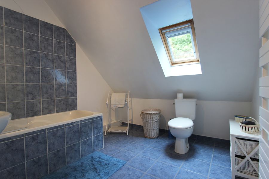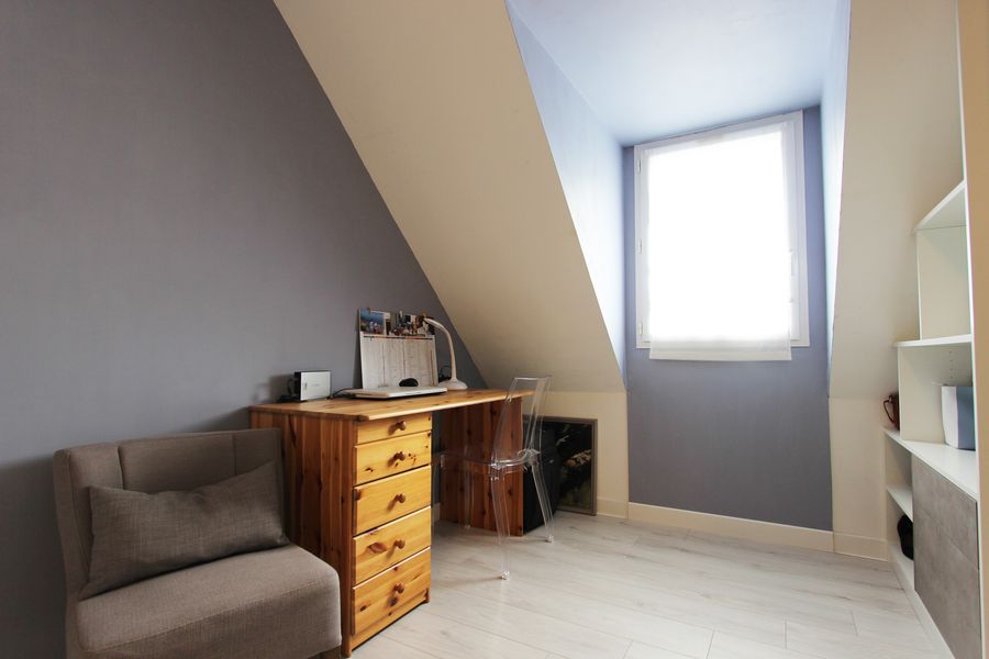 A l’Ă©tage, un palier pouvant servir de bureau dessert  trois chambres toutes possĂ©dant des rangements amĂ©nagĂ©s et une salle de bains avec wc.