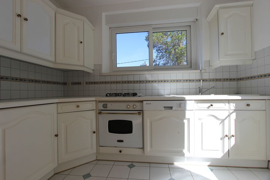 Elle comprend une entrée, une salle de bains, un wc indépendant, une pièce de vie avec cuisine ouverte aménagée (cuisinière gaz, four, frigo et lave-vaisselle) donnant sur l’extérieur et deux chambres.