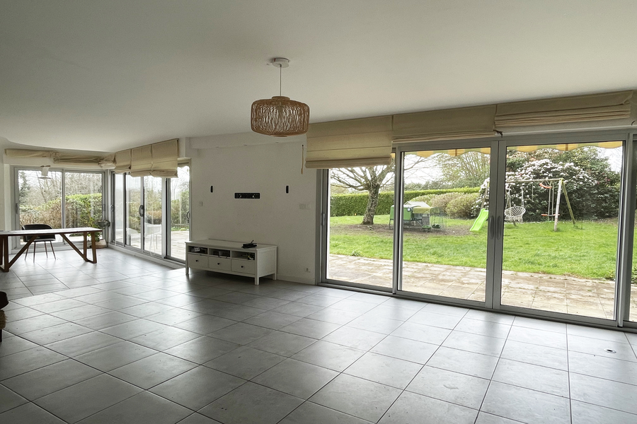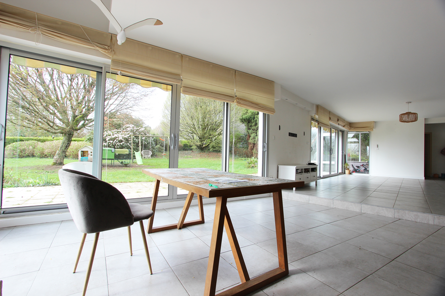 Quimper SUD, en direction de Bénodet, en impasse et au calme, cette belle propriété s’offre dans son cadre de verdure. Dès l’entrée passée, se dévoile une lumineuse pièce de réception d’environ 65 m², ouverte sur la terrasse et le jardin. A proximité, se loge une grande cuisine dinatoire et sa…