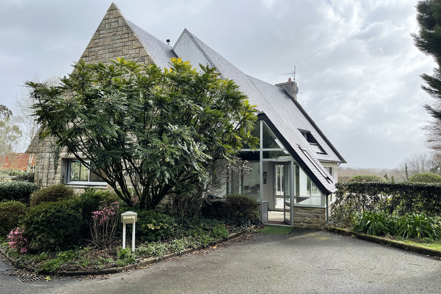 Quimper SUD, en direction de Bénodet, en impasse et au calme, cette belle propriété s’offre dans son cadre de verdure.
