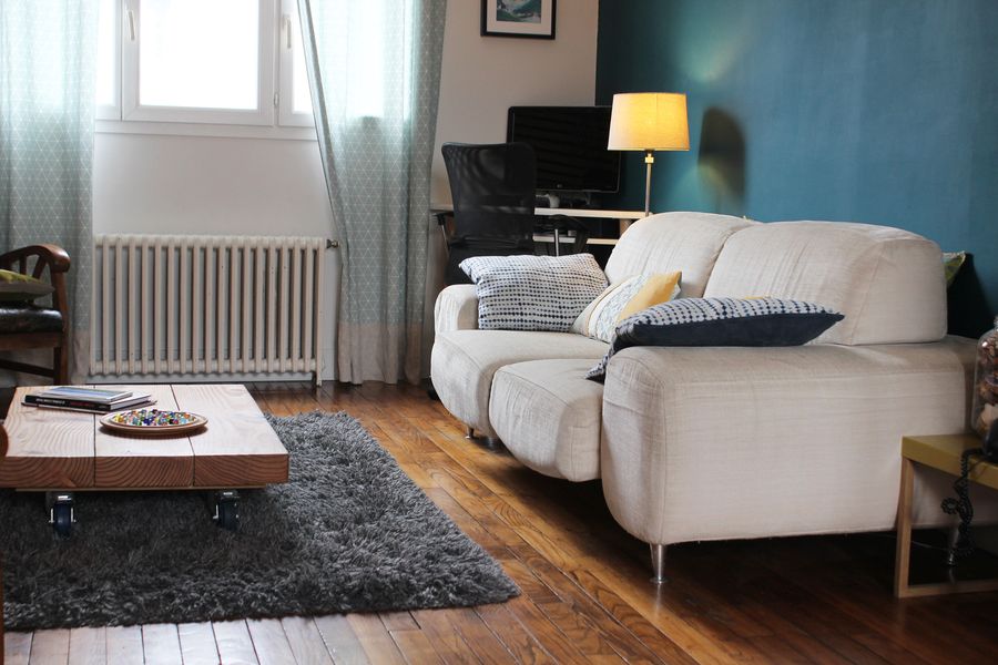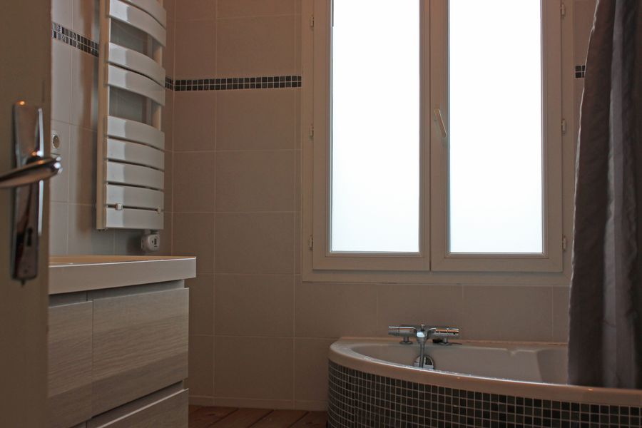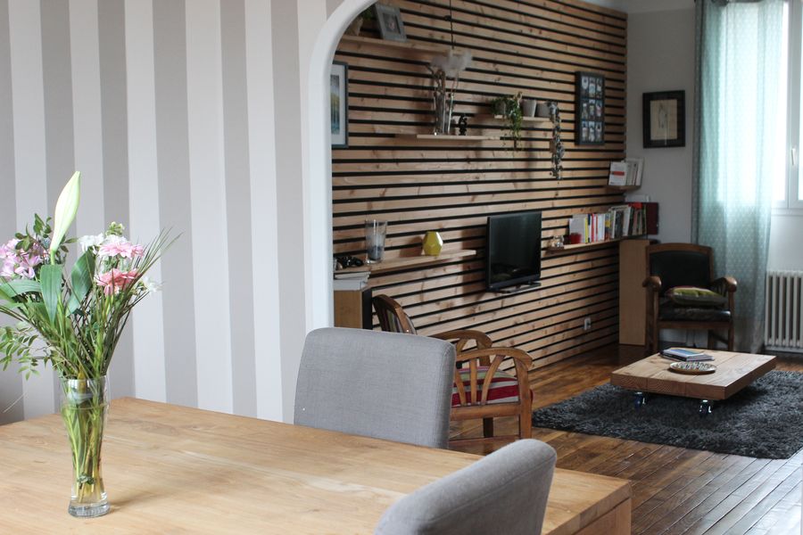 Sa pièce de vie traversante Est-Ouest, où l’on retrouve parquets anciens & hauteur sous plafond a été ouverte sur la cuisine équipée, totalisant 46 m² d’espace de vie.