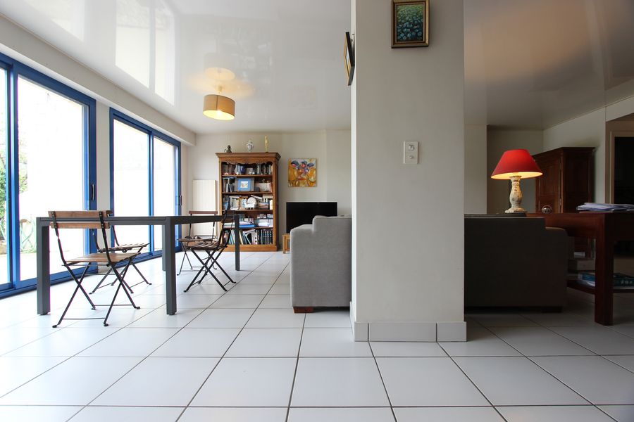 Une situation très recherchée, à moins de 5 min à pied du centre historique et des Halles de Quimper, pour cette demeure de beaux volumes qui s’adjoint un joli jardin bien exposé et un appartement indépendant. Édifiée à l’origine dans les années 30′, la bâtisse a été entièrement restaurée à la fin des années 1980.