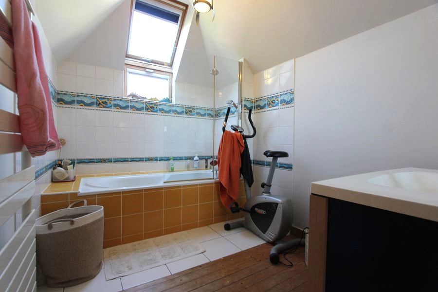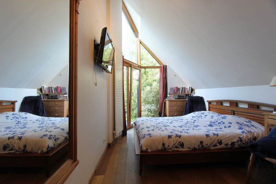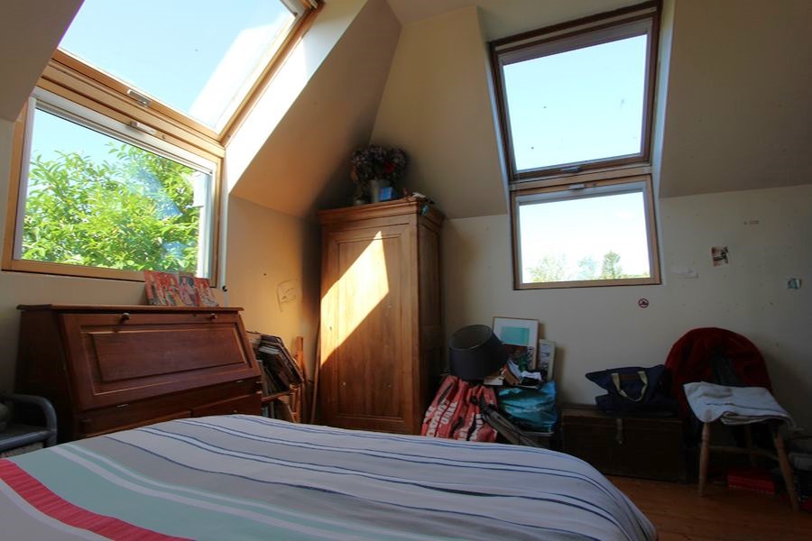 Vous trouverez également une agréable chambre avec placards accompagnée d’une salle de bains & d’un bureau.