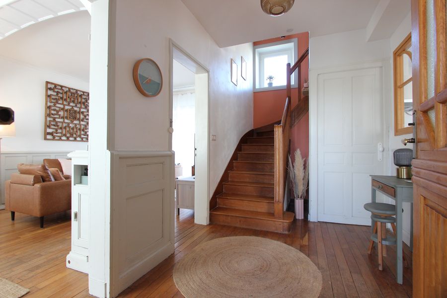 Dans cette propriété d’environ 200 m², bâtie sur un terrain de 371 m², l’ancien et le moderne se rencontrent harmonieusement, offrant un cadre de vie apaisant à quelques pas des plages et du port de plaisance. Au rez-de-chaussée, un salon-séjour lumineux, grâce à sa double exposition, s’ouvre sur un jardin…
