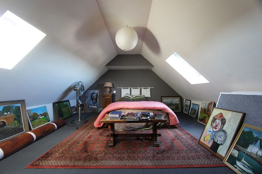 Le coin nuit est composĂ© de cinq chambres dont deux sont mansardĂ©s au dernier Ă©tage, d’une grande salle de bains & d’une beau palier pour un bureau ou une salle de jeux.
