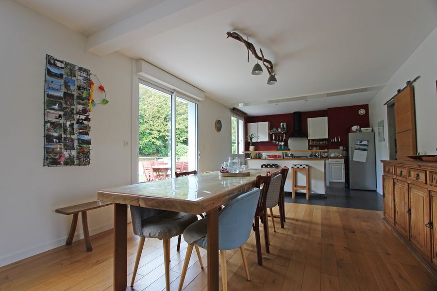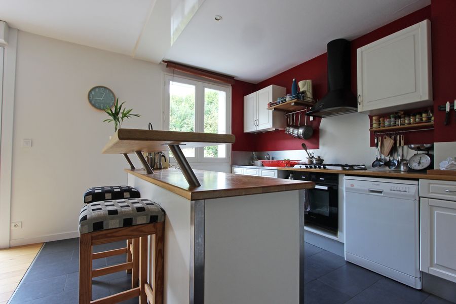 Idéalement située, au calme & en réseau bus, cette jolie maison datant de 1966 a été parfaitement rénovée & bénéficie d’un agencement intérieur pensé pour toute la famille. Le grand espace de vie, aérien & traversant, de 44 m² se compose d’une cuisine aménagée équipée ouverte sur une grande salle…