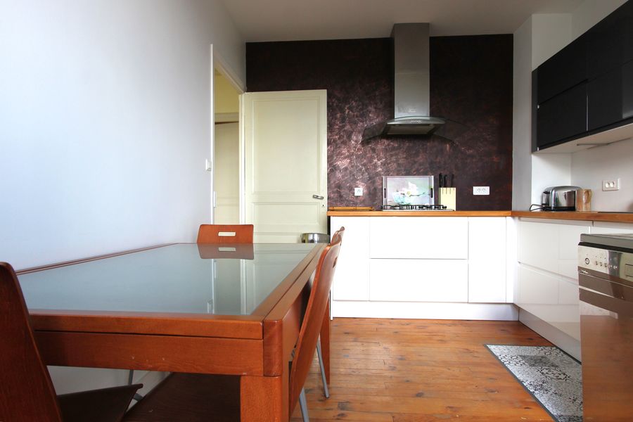 En son rez-de-chaussée, l’entrée dessert un bel espace de vie traversant & lumineux et une cuisine indépendante, dinatoire à l’agencement moderne.