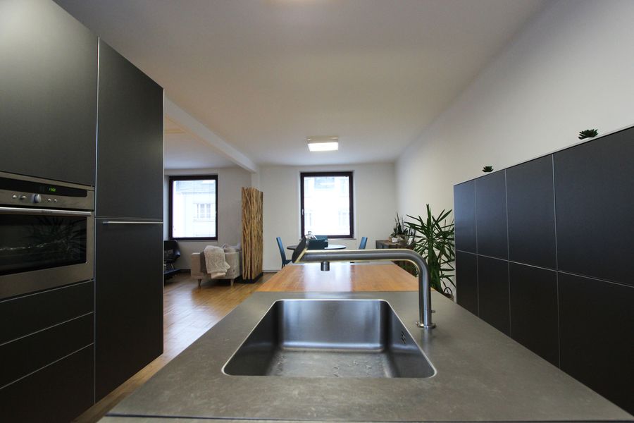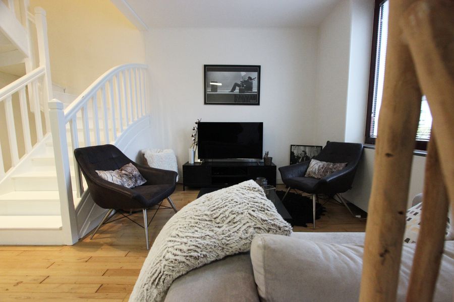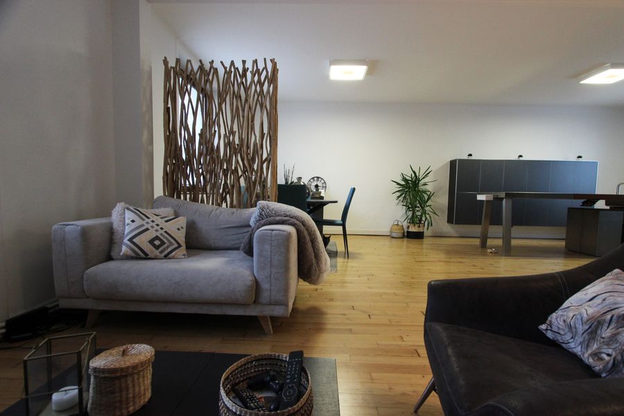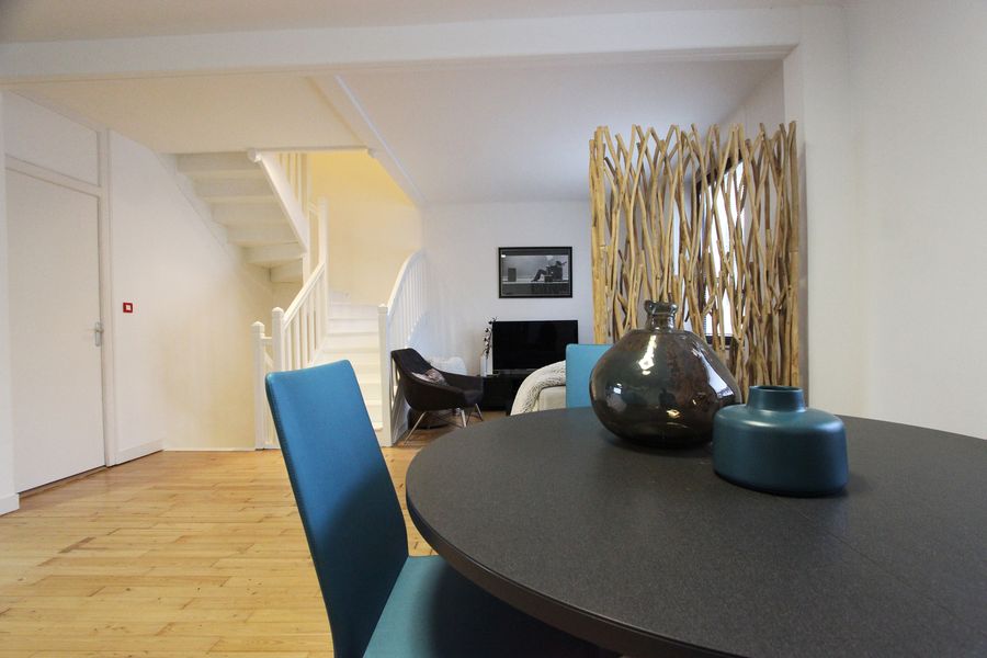 Au premier niveau, son bel espace de vie en open space, se targue d’une superbe cuisine de standing BULTHAUP de 2009, associée au parquet d’origine patiné où se reflète la belle luminosité de la pièce. Une chambre d’ami à l’aménagement qualitatif prend place sur cet étage.