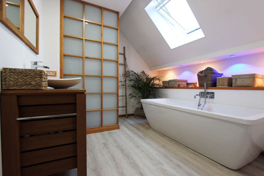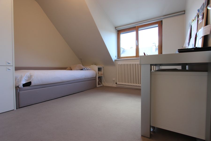 Au second, la chambre principale bénéficie d’un aménagement dressing mural choisi jusque dans ses détails, à la qualité indéniable. Les termes prestations haut de gamme prennent ici tout leur sens. Deux autres chambres, avec chacune son empreinte particulière, se logent au niveau, ainsi qu’une très belle salle de bains.