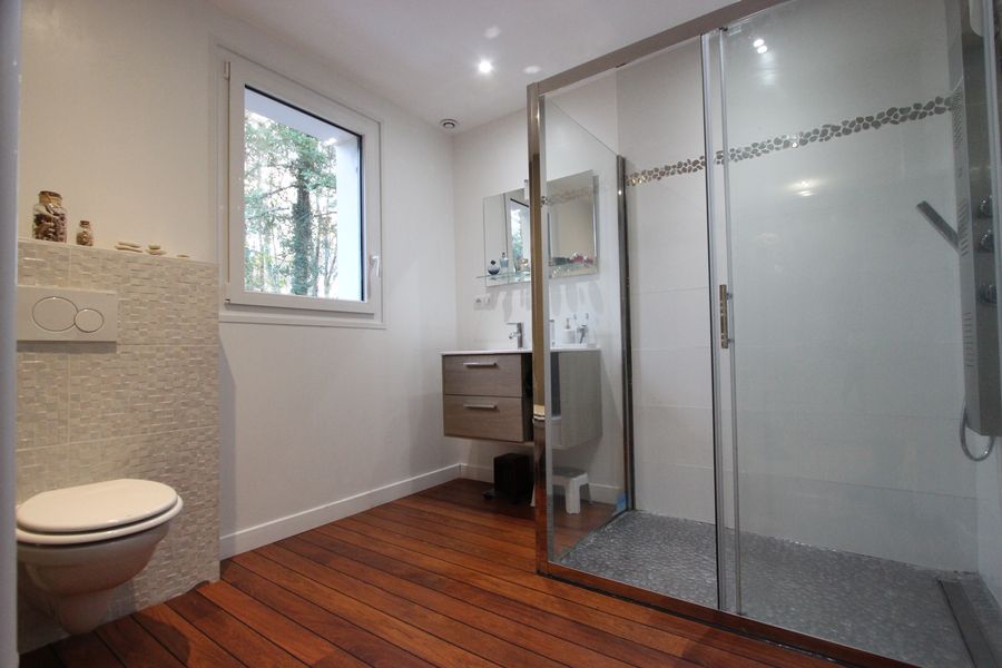 Pour compléter ce rez-de-jardin une ravissante suite parentale se compose de sa chambre, sa salle d’eau, de son dressing et d’un bureau.
